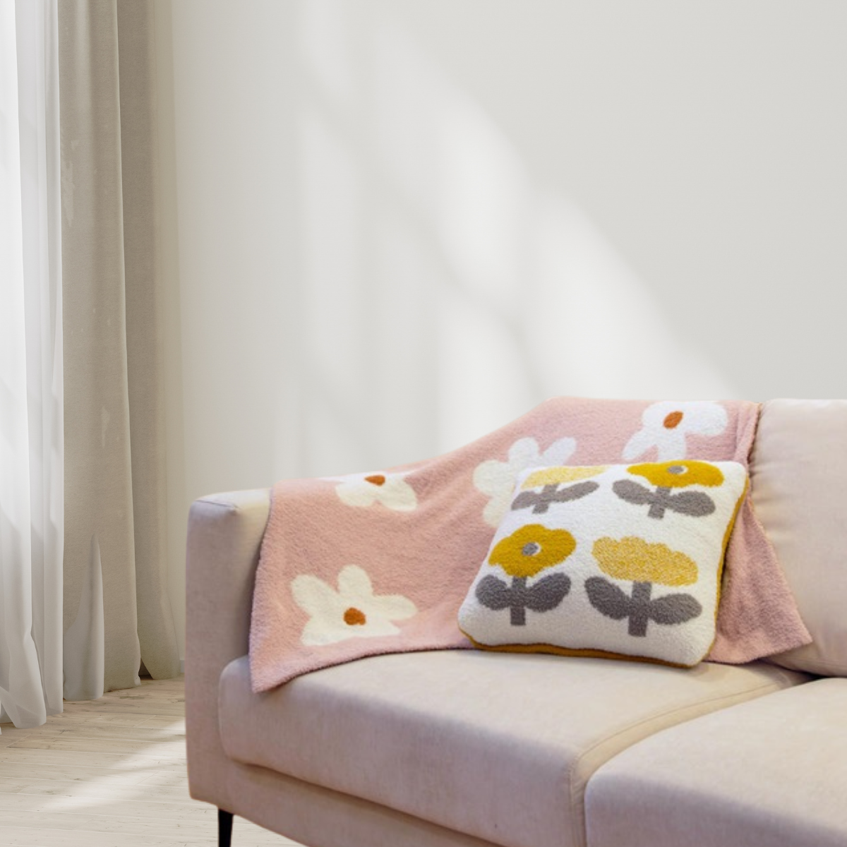北欧風の大きなお花柄がお部屋の印象を明るくしてくれます。