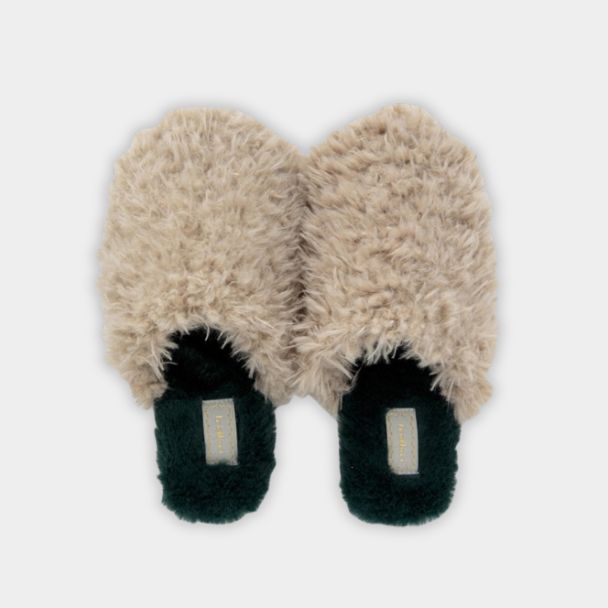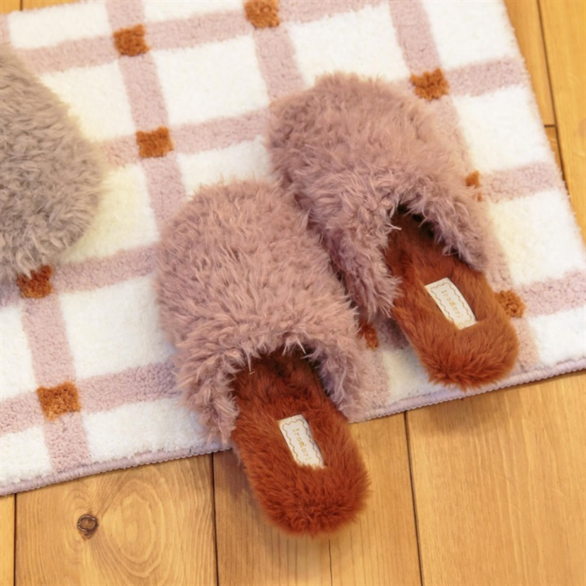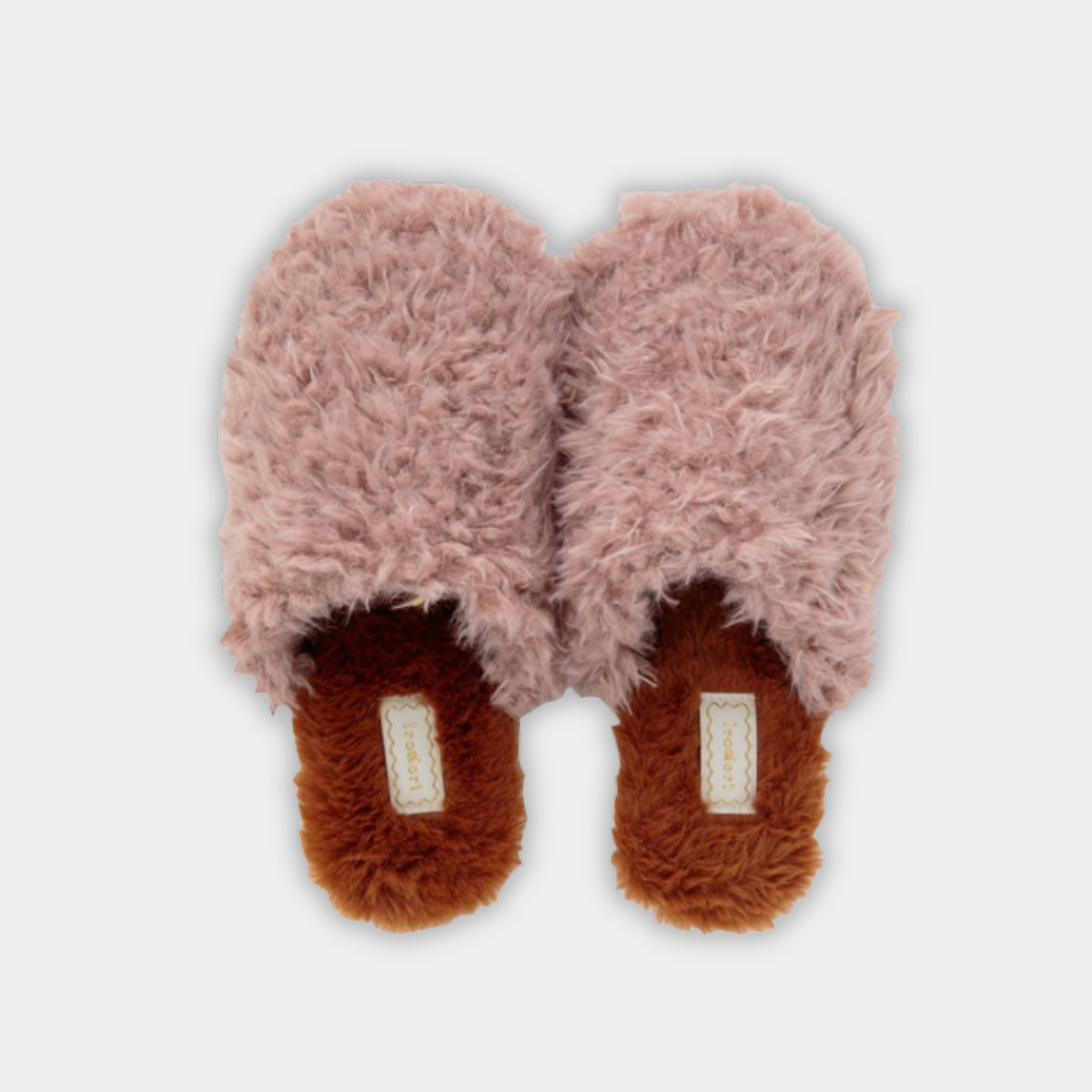 異なるファー素材を使った立体感がおしゃれな室内用スリッパ。